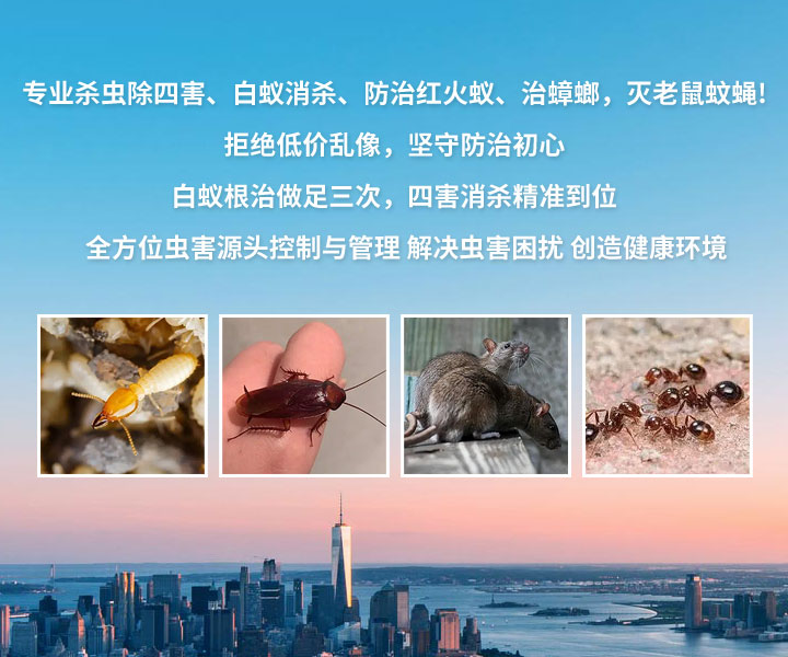 公司主要承接:佛山南海白蚁防治,里水新建房屋预防白蚁工程,和顺室内装修预防白蚁工程,大沥杀灭白蚁,黄岐房屋杀白蚁,盐步家庭杀灭白蚁服务,平洲厂区仓库灭治白蚁工程,住宅小区、桂城花园别墅灭治白蚁工程,西樵水库堤坝白蚁防治,园林、九江古树白蚁防治。狮山四害消杀,松岗除四害(蚊、蝇、蟑螂、老鼠)消杀工程,罗村厂区四害消杀,小塘厂房除四害服务,桂城街道四害消杀工程,大沥厂区杀虫灭老鼠,各种环境大型灭老鼠工程,室外草坪绿化大面积杀灭红火蚁服务。